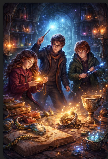 Gasesc Horcrux-uri si le distrug (de exemplu, Diadema lui Ravenclaw, Medalia Slytherin).